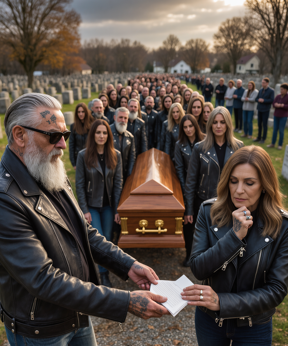One of them—broad-shouldered, silver in his beard, known only as Preacher—paused by my mother. He pressed a folded note into her hand, his gaze locking onto Sheriff Brody, who suddenly looked pale as stone.