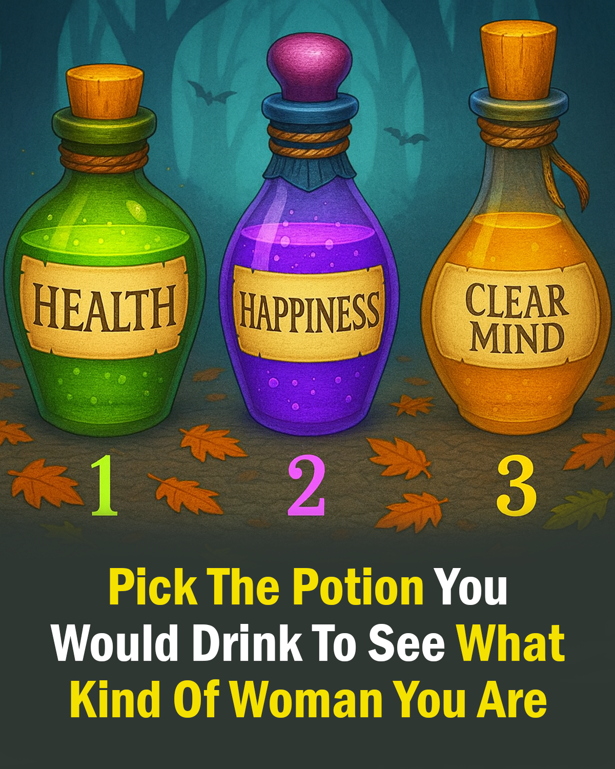 In a magical forest, three glowing bottles appear before you.