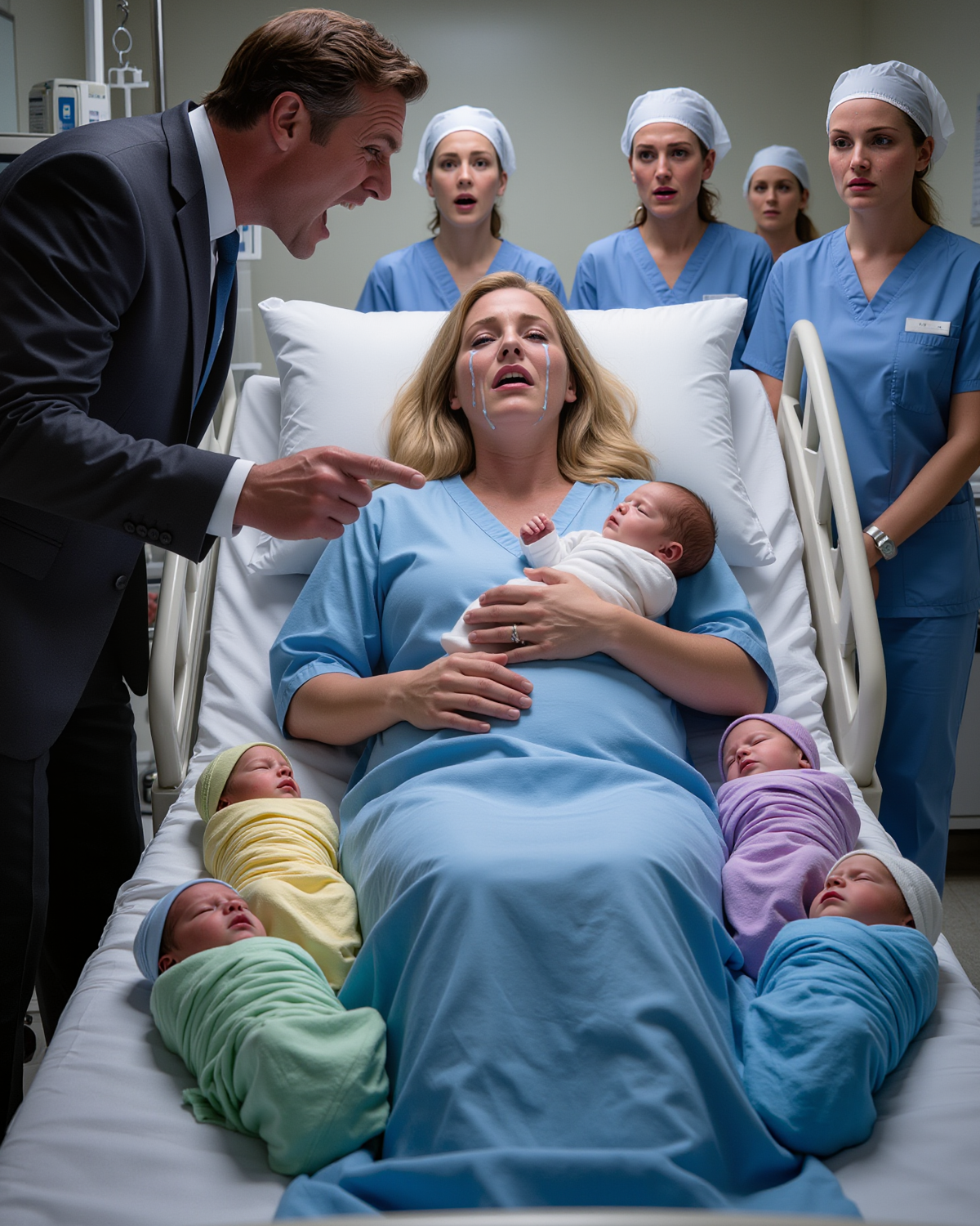 Anna lay exhausted, trembling from hours of labor, her skin damp with sweat. In her arms rested five tiny newborns, each wrapped in soft pastel blankets. Triplets would have amazed the hospital staff, but quintuplets? That was beyond rare. It should have been a miracle. Yet no one in the room looked at them with wonder.
