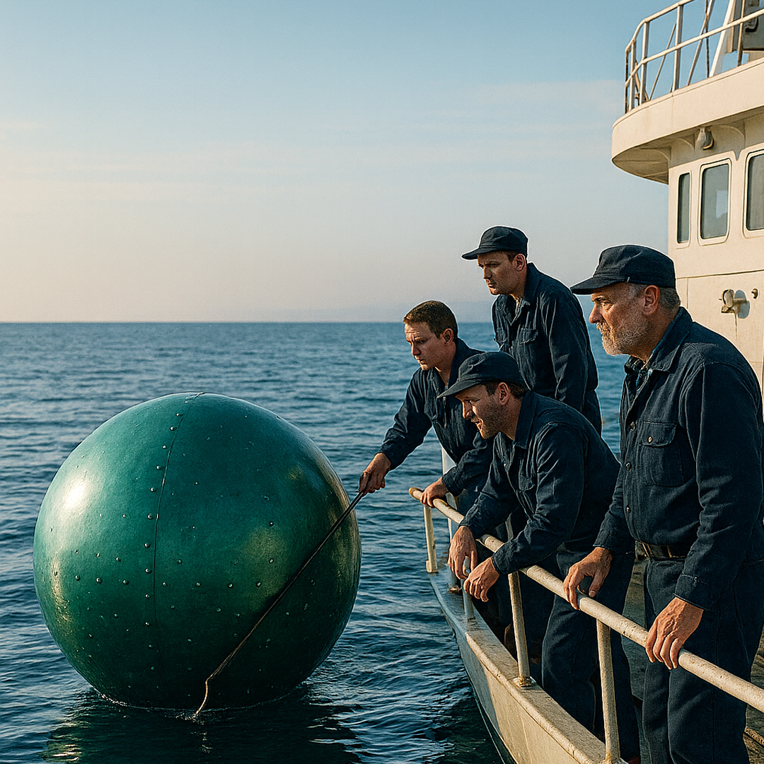 When they finally reached it, the crew cut the engines and let the vessel drift. The sphere bobbed gently beside them, its metallic skin shimmering. One sailor reached out with a long hook and tapped it.