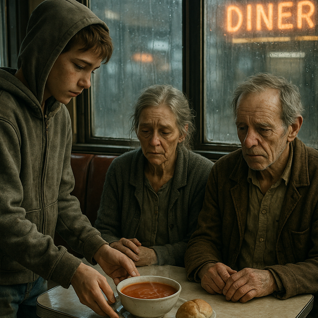 Ethan paused. His spoon hovered over the bowl. The soup smelled amazing—but so did kindness.