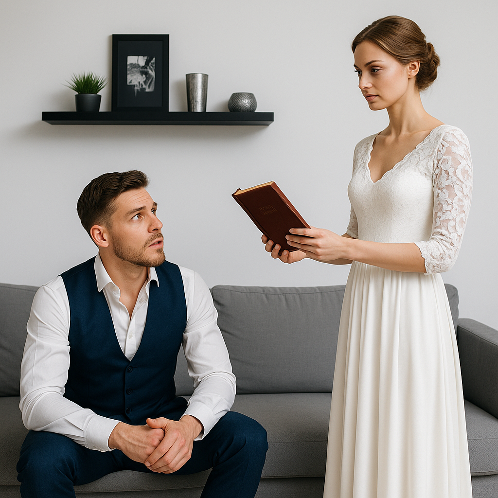 I met my bride only on our wedding day. Her name was Sarah. According to my mother, she was an orphan, raised by cool relatives in a forgotten town. Hard years had made her quiet, obedient, modest. Most important—my mother’s eyes glittered—Sarah could not speak. She communicated with gestures and a little leather notebook.