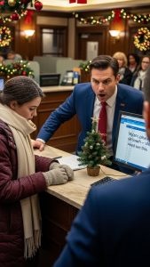 I sat in the lobby, heart rattling in my chest as people rushed by with last-minute cards and deposits. After what felt like an eternity, the branch manager approached. His name tag read ELIAS BURNS, and his face was unusually tense.
