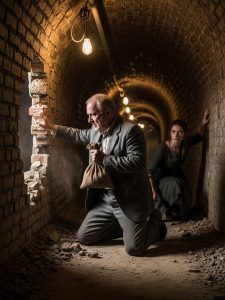 When several more minutes passed without a sound upstairs, Ricardo dragged an old wooden chest aside and dropped to his knees. With practiced precision, he loosened a brick and pulled it free, as though he had memorized every crack long ago.