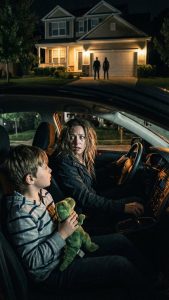 I drove in silence. I didn’t go straight to our driveway. Instead, I took a back route through the neighborhood, finding a spot on a parallel street that offered a view of our house through the trees without us being easily seen. I parked in a dark spot between two large oaks. From there, we could see our home.