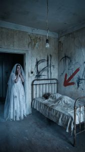 My phone’s flashlight wobbled in my trembling hand, sweeping over peeling wallpaper, a narrow cot with straps on the sides, a small table with a half-empty glass of water… and on the far wall—