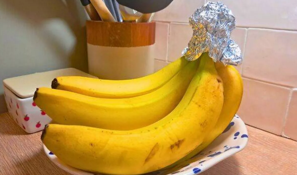 I’ve also found an even more effective method for extending their shelf life: I recently discovered that bananas release ethylene gas from their stems. So, wrapping their stems in aluminum foil or plastic wrap helps keep them fresh for weeks.